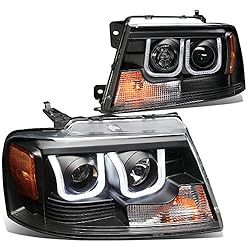 Car Accessorise,Ford,F150,Pair,of,Black,Housing,Amber,Corner,3D,LED,Halo,U-Bar,DRL,Projector,Headlights