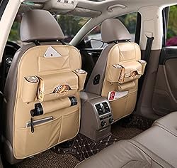 Car Accessorise,UniTendo,PU,Leather,Car,Seat,Back,Organizer,Luxurious,Muitifunction,Heavy,Duty,Design,Anti-kicking,Mat,One,Pair,(Beige)